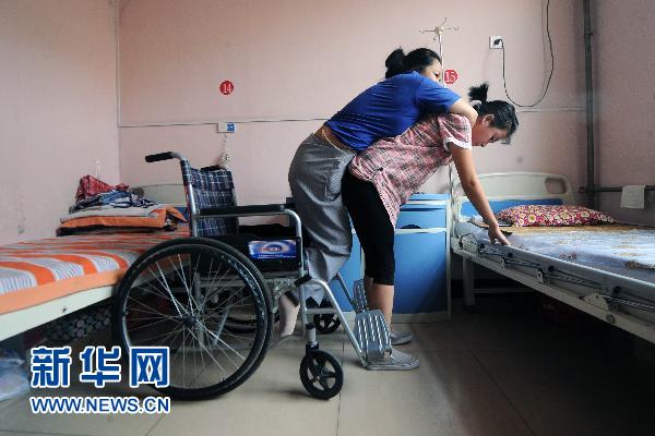 另一项必做的“功课”是协助养母做康复训练。上一年,临汾一家医院听闻孟佩杰感人故过后,将刘芳英接入医院免费医治。为合作医院医治,孟佩杰每天要帮养母做240个仰卧起坐、拉腿200次、捏腿15分钟……常年瘫痪在床的养母排便困难时,孟佩杰就用手指帮她一点点地抠出来。